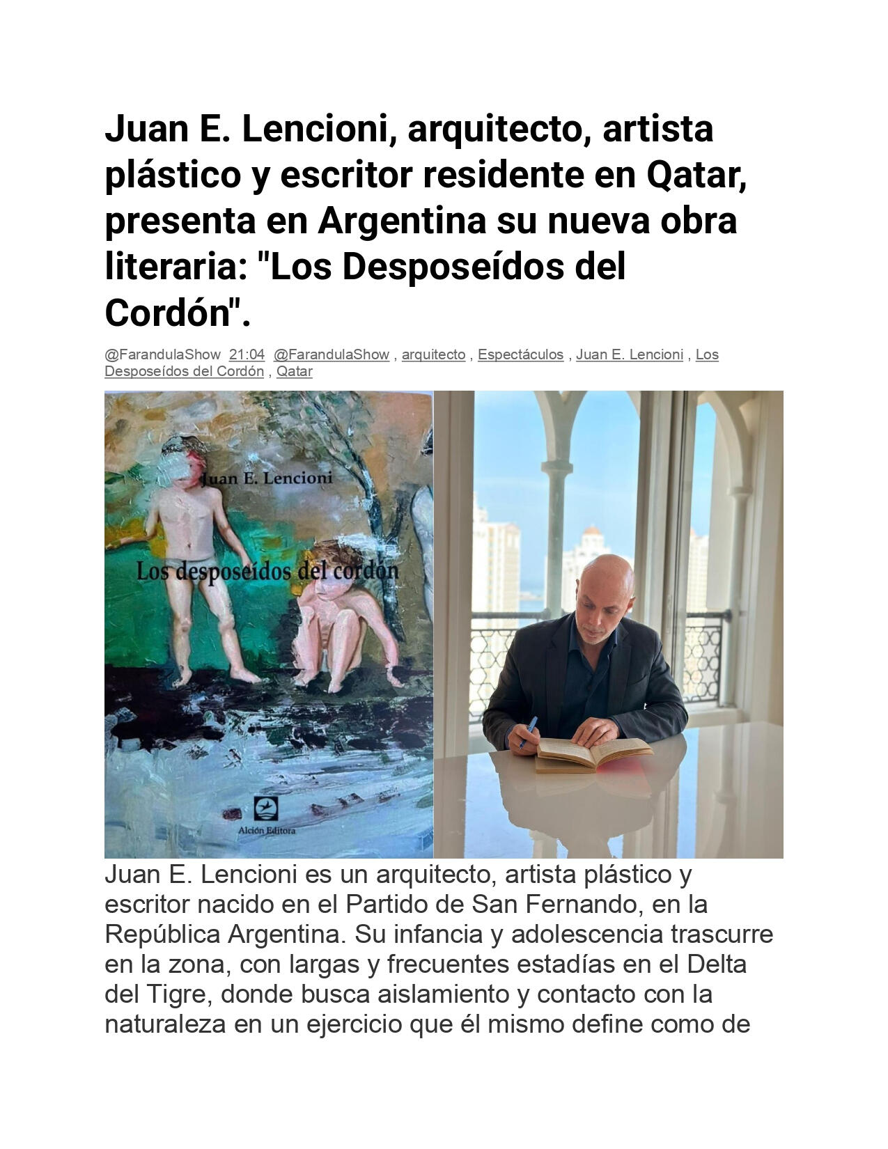 Juan Lencioni es escritor y novelista argentino, además de artista plástico y arquitecto.