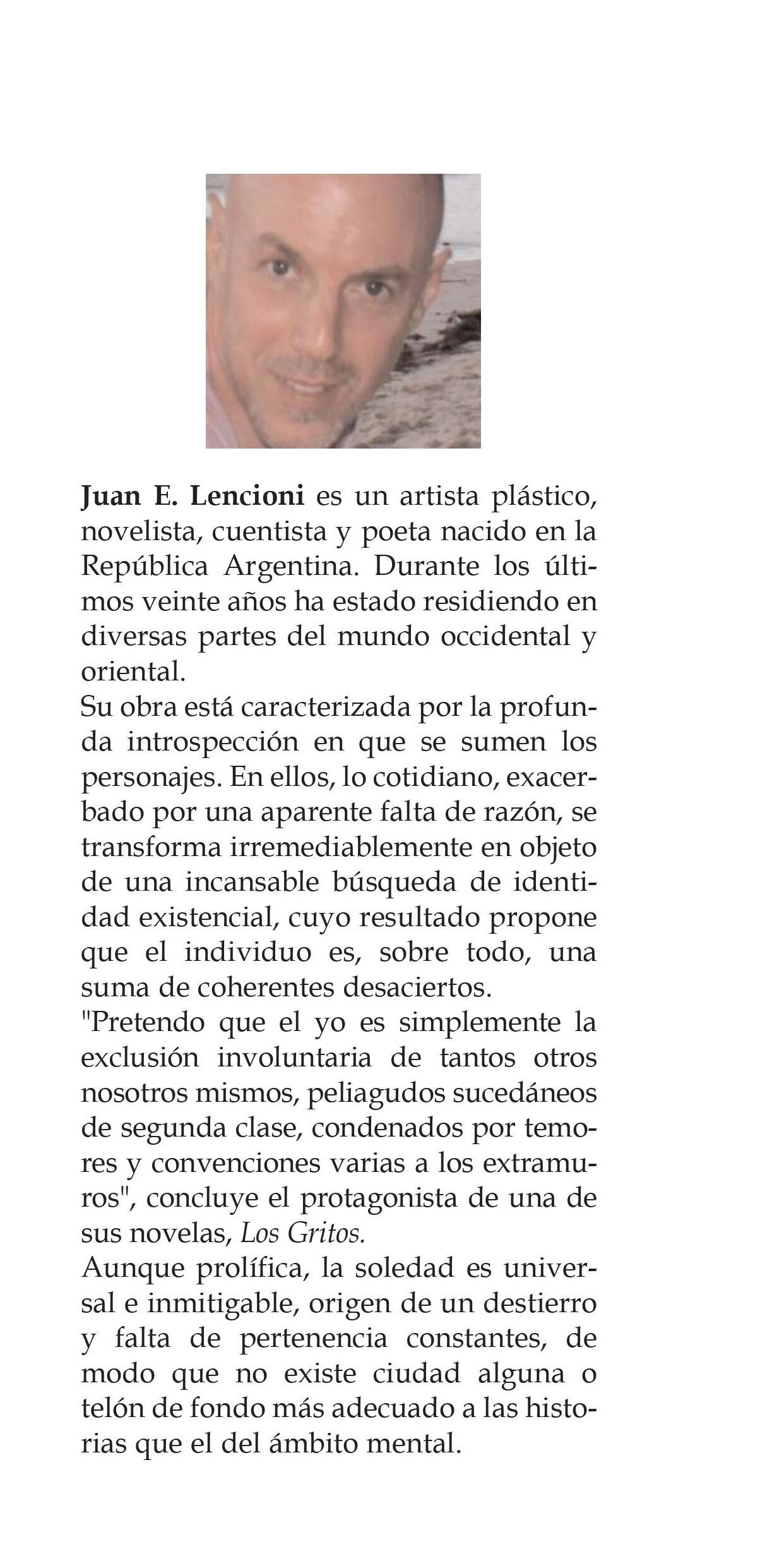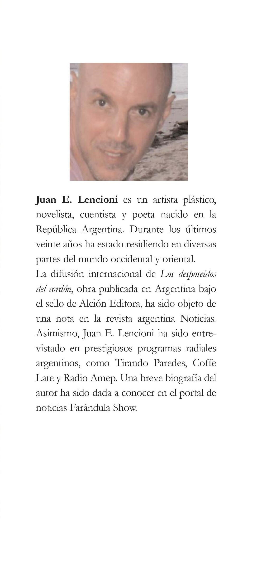 Juan Lencioni es escritor y novelista argentino, además de artista plástico y arquitecto.