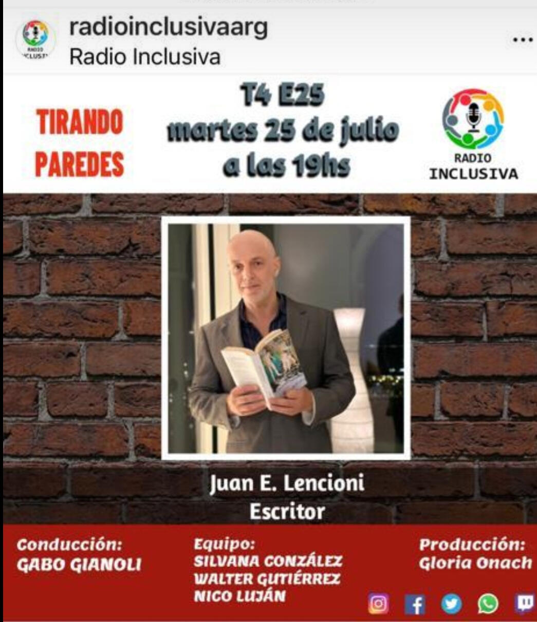 Ha sido entrevistado en entrevistas radiales y medios culturales. Publica fragmentos de su obra en Instagram @juaneslencioni.